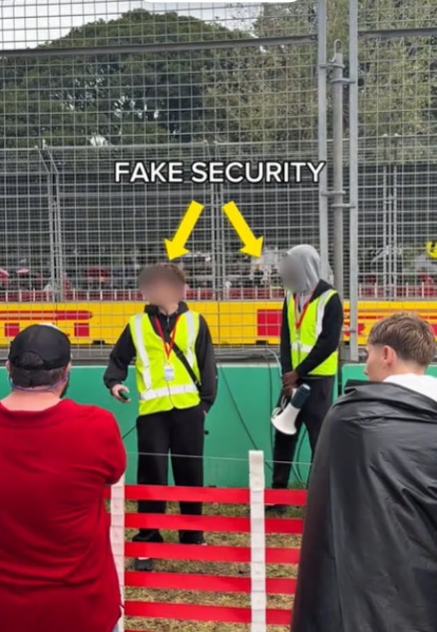 يُزعم أن اثنين من TikTokers تظاهرا بأنهما حراس أمن في سباق الجائزة الكبرى الأسترالي لعام 2025 (في الصورة)